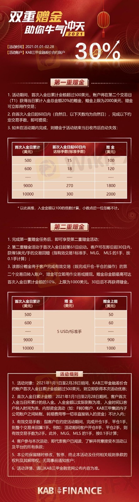 KAB三甲金融赠金来袭,入金可得30%赠金,最高可得3000美金